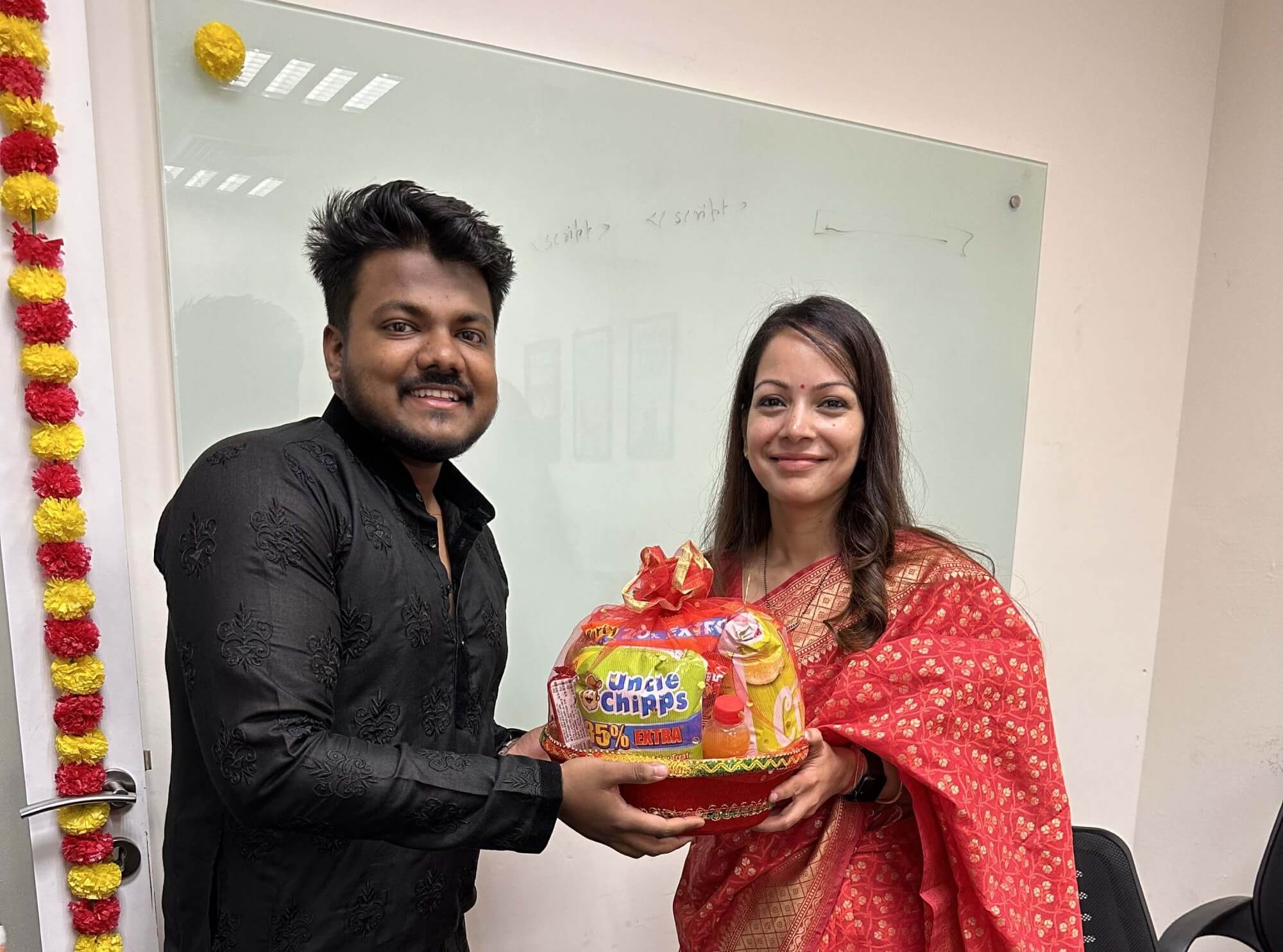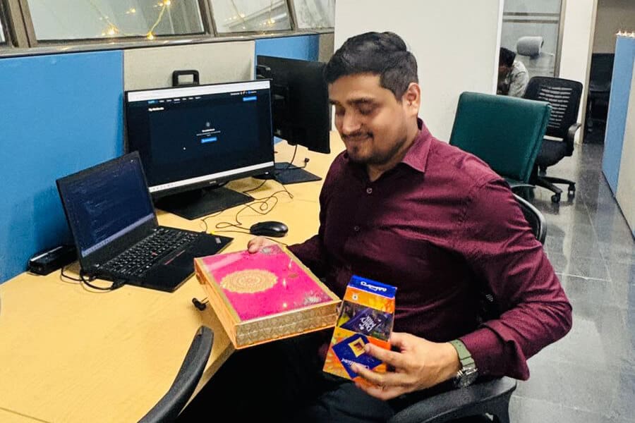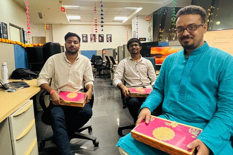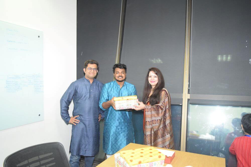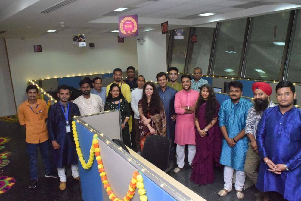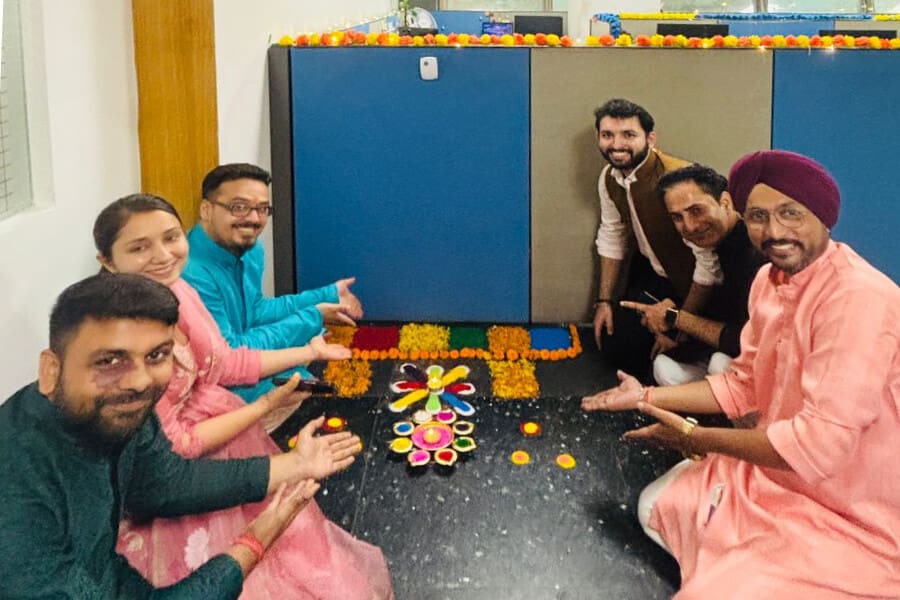 Look at these pictures that capture the essence of our celebration! We dressed up in colorful traditional clothes, drew beautiful rangolis, and danced our hearts out. The festive spirit brought us together like one big family. Our shared laughter and joy created unforgettable memories. We’re not just a company; we’re a close-knit community.