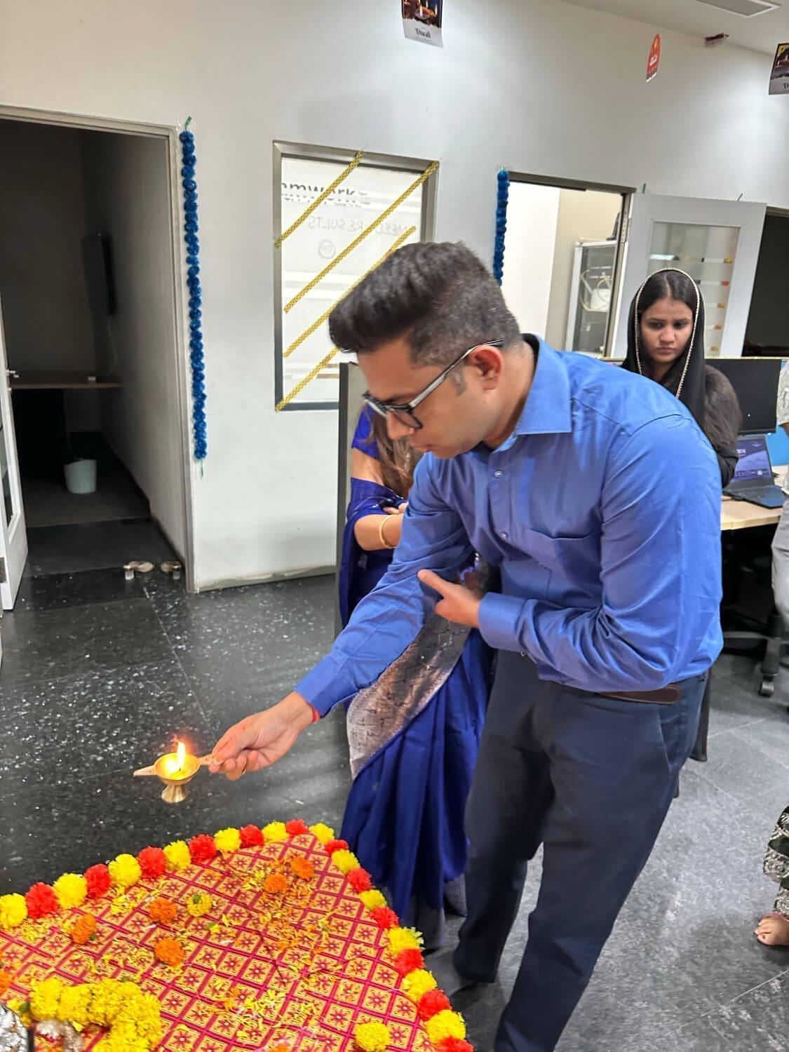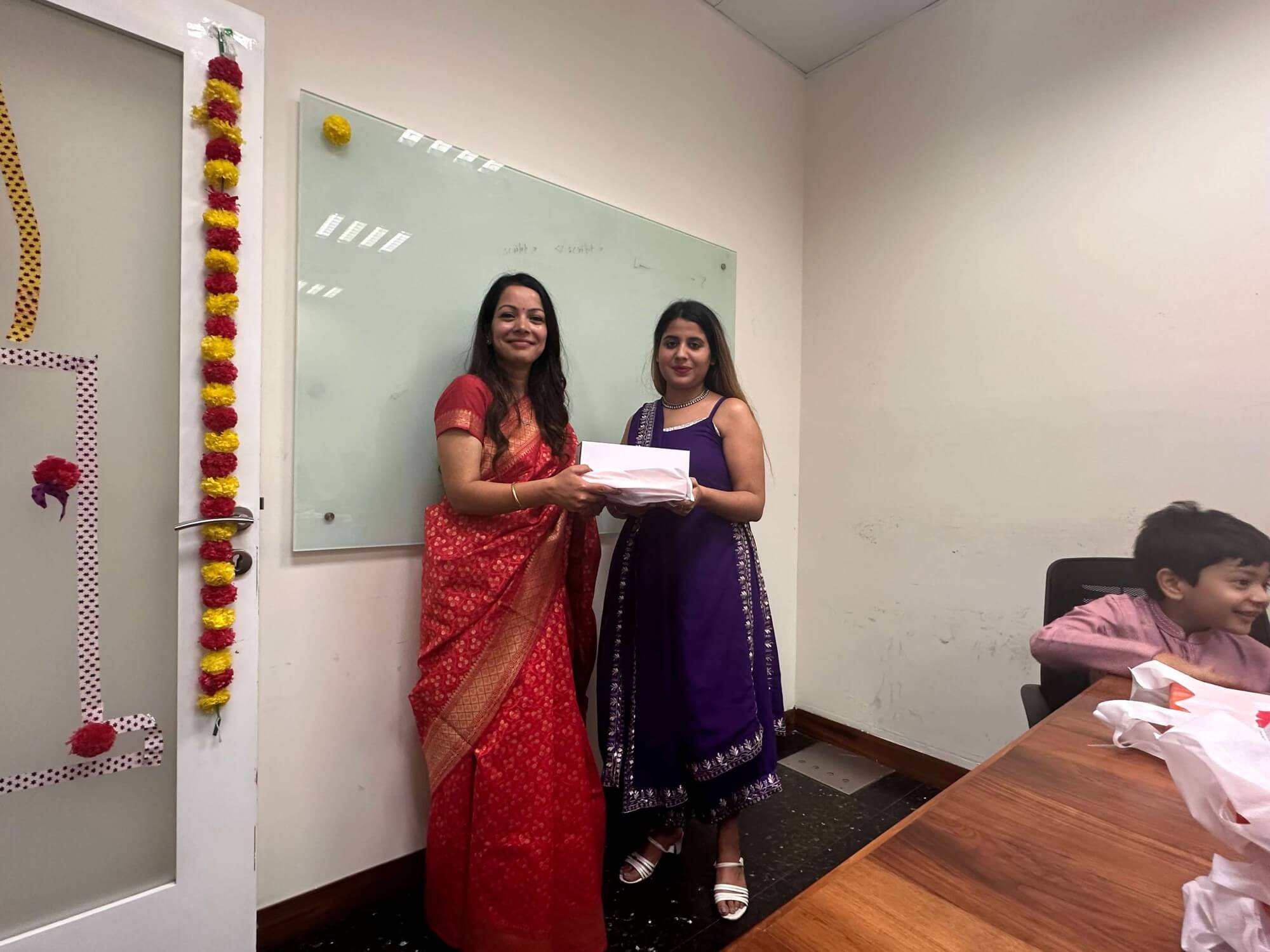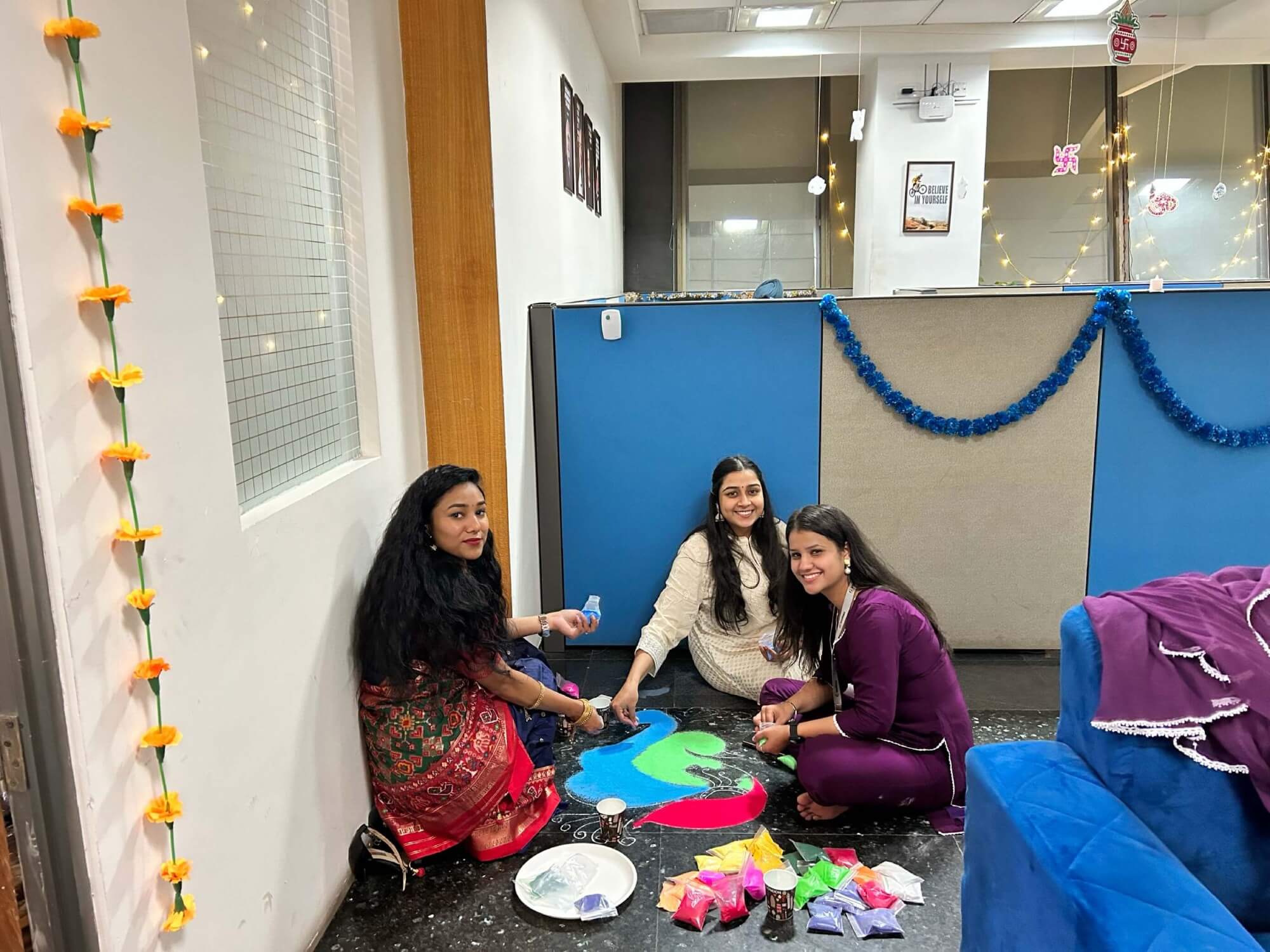 Look at these pictures that capture the essence of our celebration! We dressed up in colorful traditional clothes, drew beautiful rangolis, and danced our hearts out. The festive spirit brought us together like one big family. Our shared laughter and joy created unforgettable memories. We’re not just a company; we’re a close-knit community.