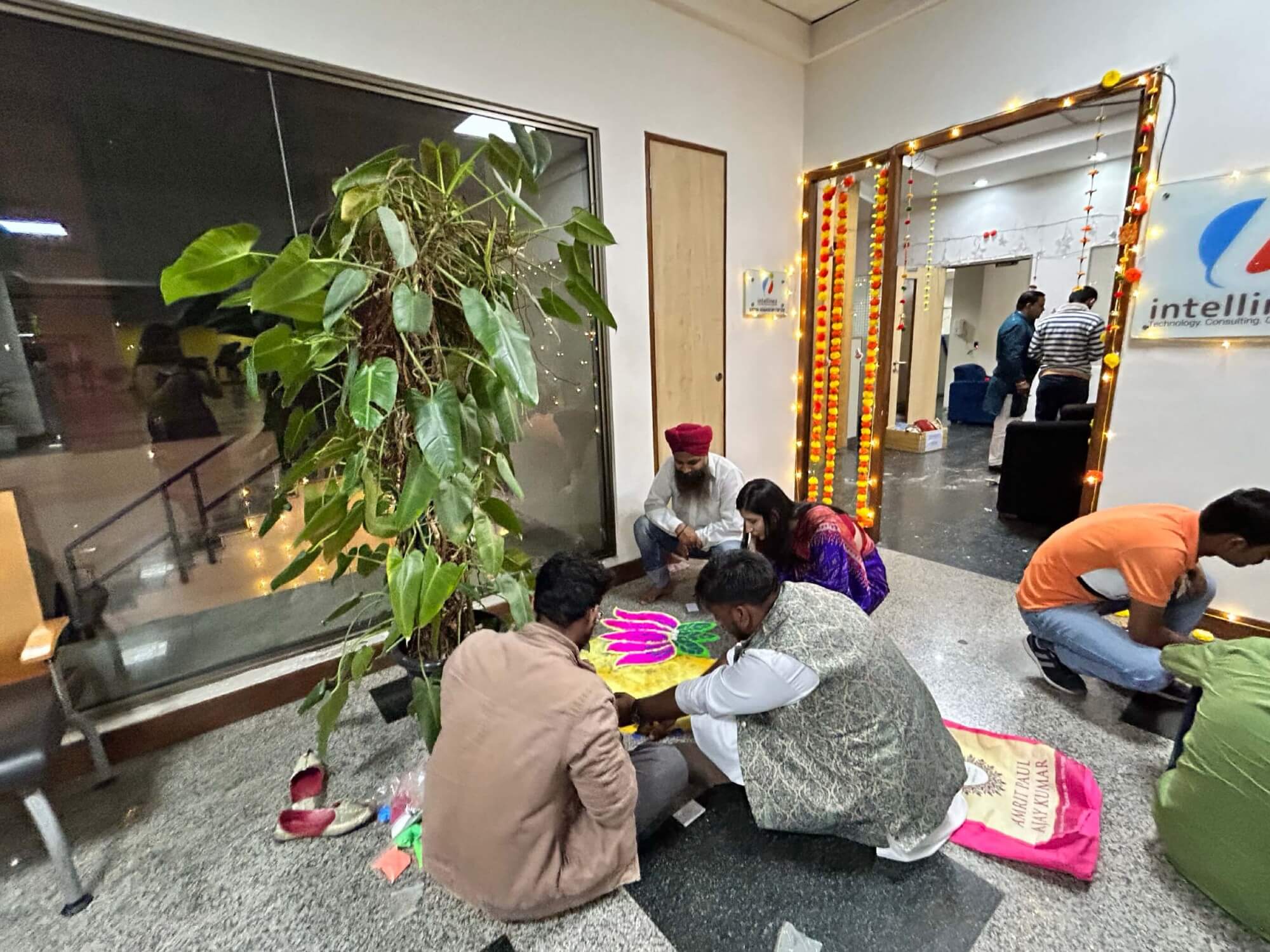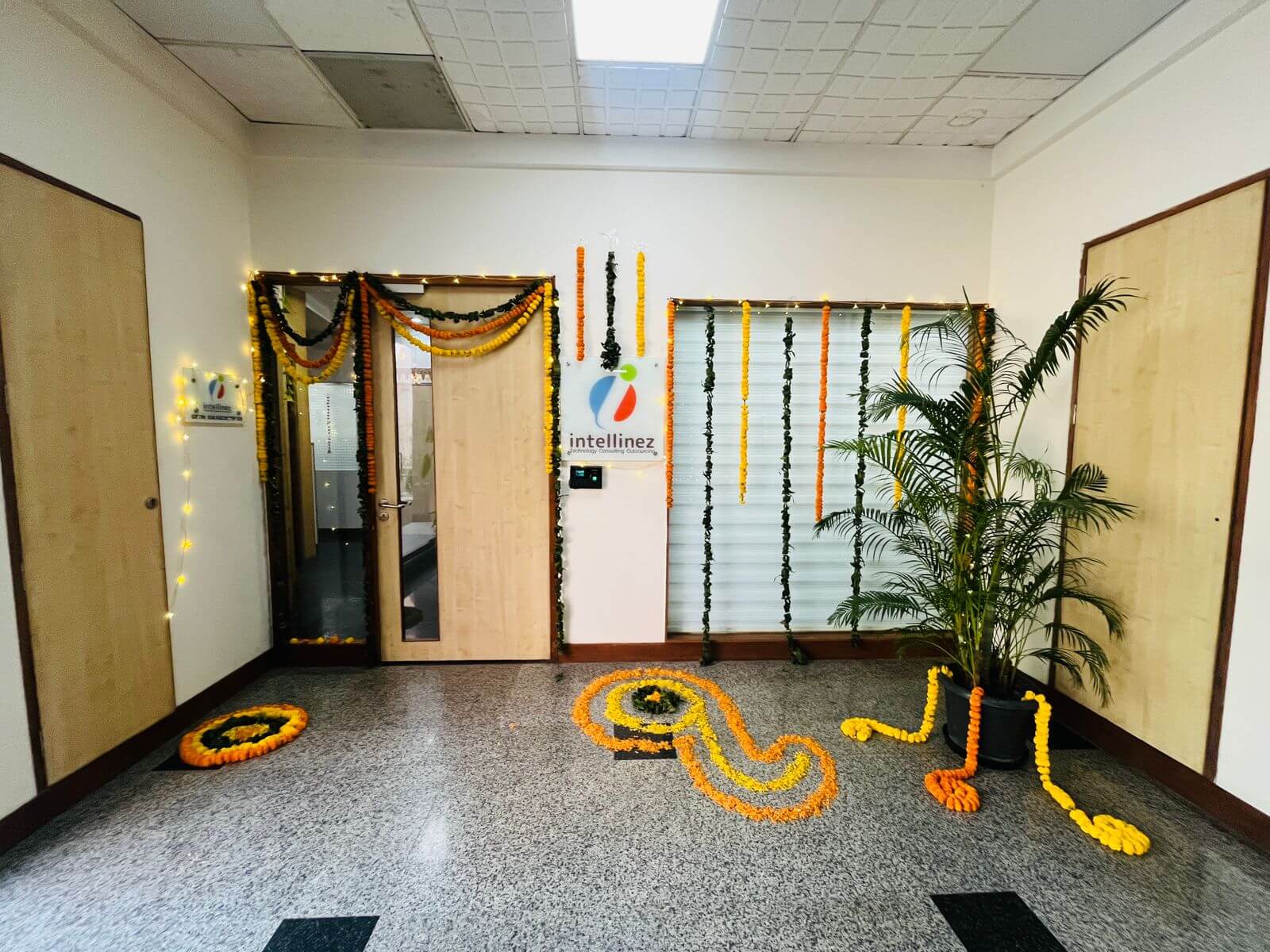 Intellinez Systems celebrated Diwali 2025 with vibrant colors, festive cheer, and team spirit. The celebration featured beautiful Rangolis, a devout Laxmi Pooja, followed by fun games and a lively pizza party. The day reflected our culture of joy, creativity, and collaboration, reminding us that the brightest ideas emerge where teams celebrate together. Our office truly sparkled with festive energy and shared smiles!