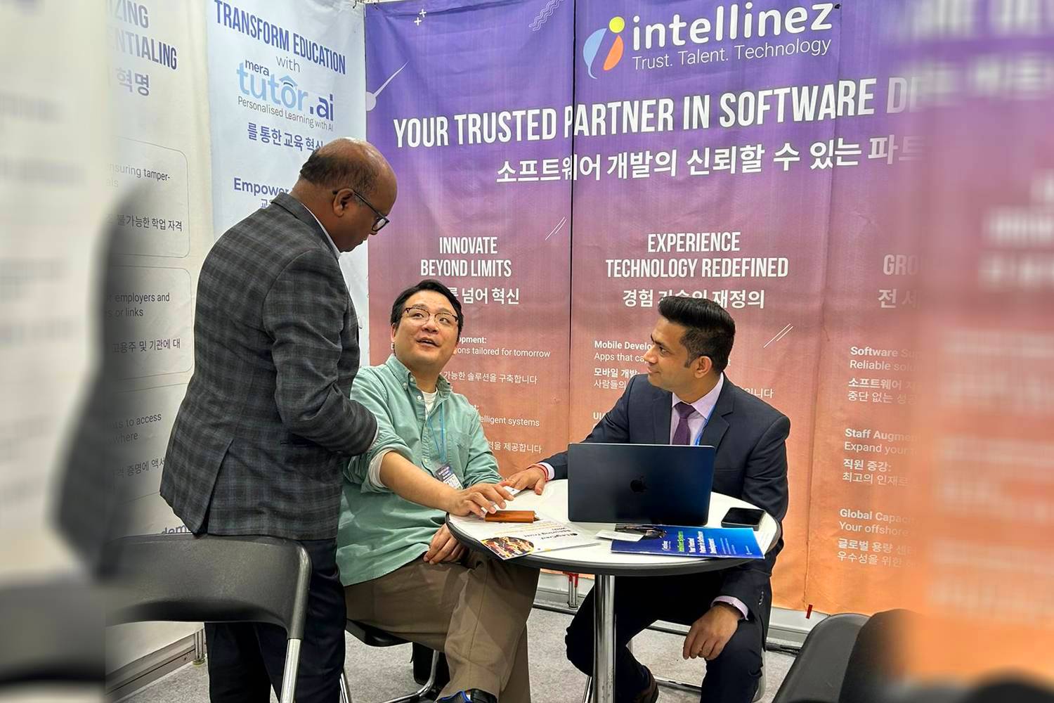 Intellinez Systems proudly showcased 3 groundbreaking AI solutions – MeraTutor.ai, MeraTutor Homie, and EnCoach – at IndiaSoft 2025, held at Bharat Mandapam, New Delhi. Engaging with global leaders, educators, and innovators, the team spotlighted how AI can drive transformation in learning and enterprise growth, reinforcing our vision to empower through intelligent solutions.